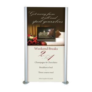 Linear Straight graphic panel kit A, Anodized aluminum construction Portable and easy to assemble and Steel oval bases supplied as standard